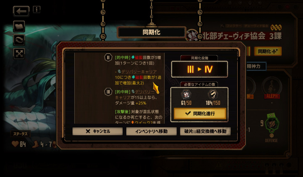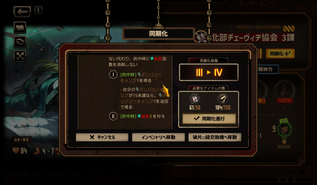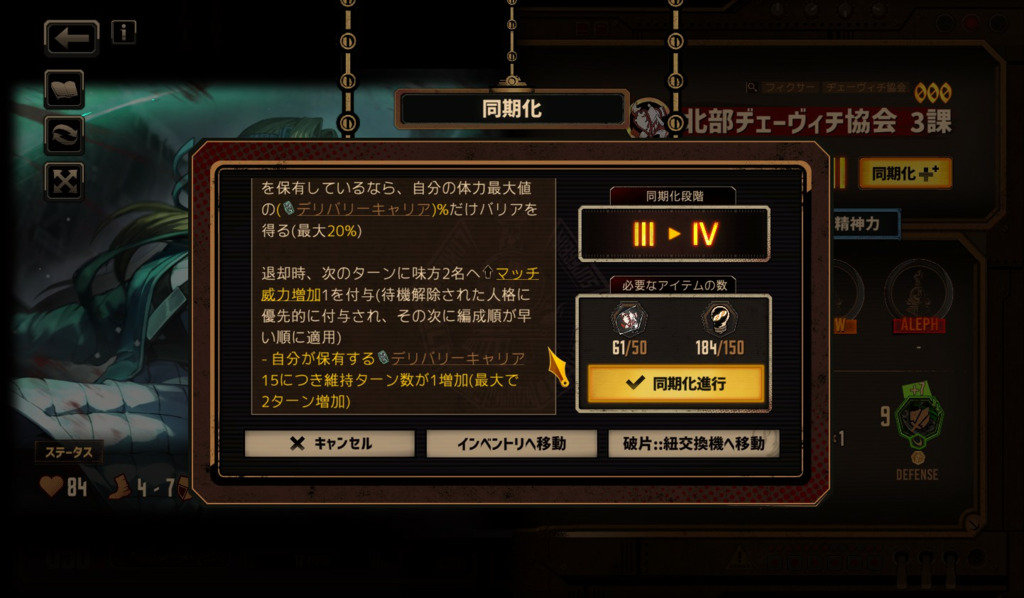 同期Ⅱ→Ⅲ(4枚目のカーソルで隠れてしまったところはデリバリーキャリア10)(S3の詳細撮り忘れたので補足してもらえると助かります)