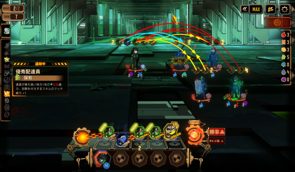 お札のダメージをパッシブのバリアで相殺できることを確認。これによりパーティ内で最大のHPを維持しやすくなるため、連続して紅籍シンクレアのパッシブを受けることができる。