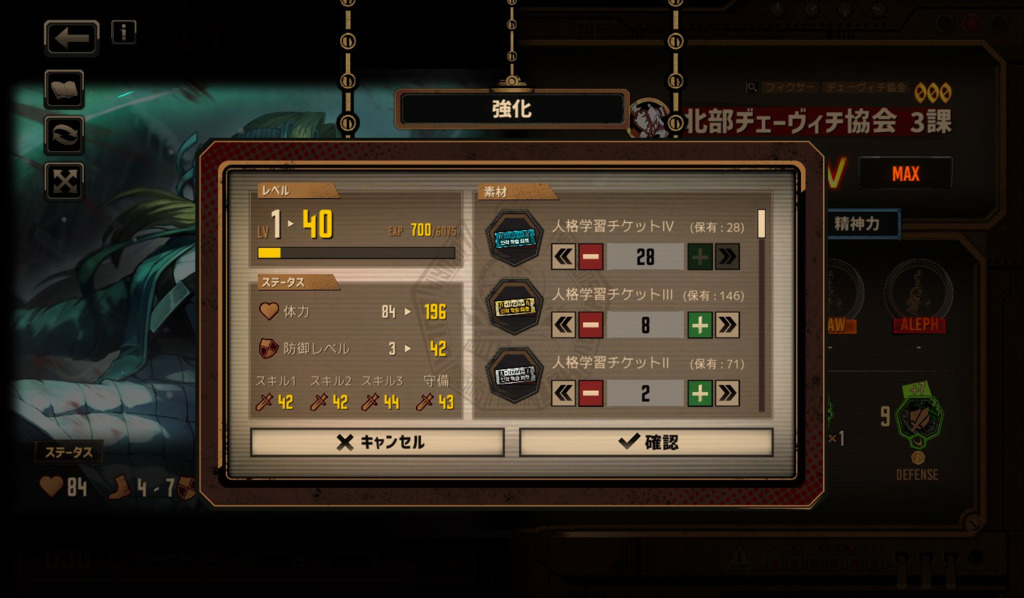 破裂パの適性はちゃんと弄ってみないと正直よくわからないけど 休憩福祉で離脱するとスロット圧迫せずに退場できるうえに、最初の混乱区画が約半分で体力も200以上あると単騎運用する上での補助としてはこの上ない性能してると思う