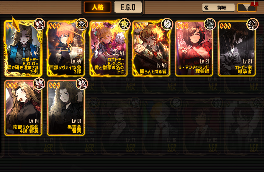 ガチャ運があんまり良くない自分としては、自我破片貯めて生き残ったロボトミー職員にします