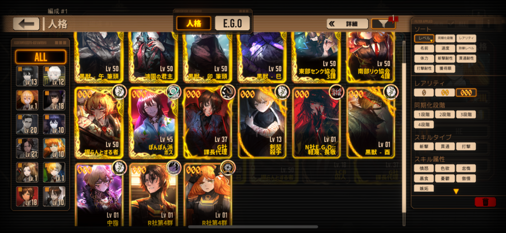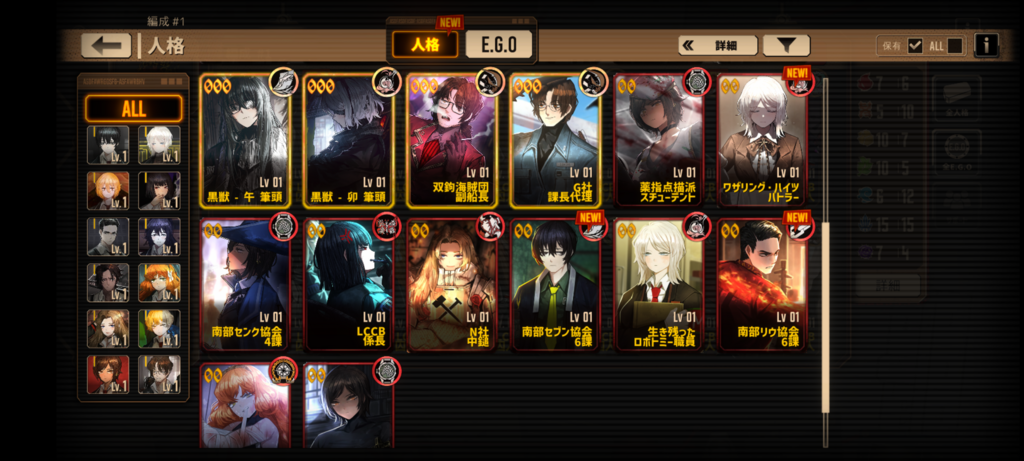 人格優先でリセマラして、ストーリー進めて集めた狂気でコラボEGOの神引き狙っていくことにします。