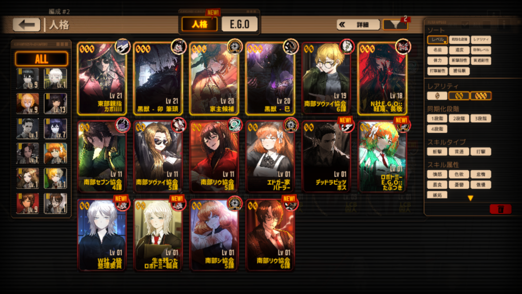 ストーリーを進める分だと出血などの状態異常よりも純粋に強い人格を集める方が良いケースが多いですね。