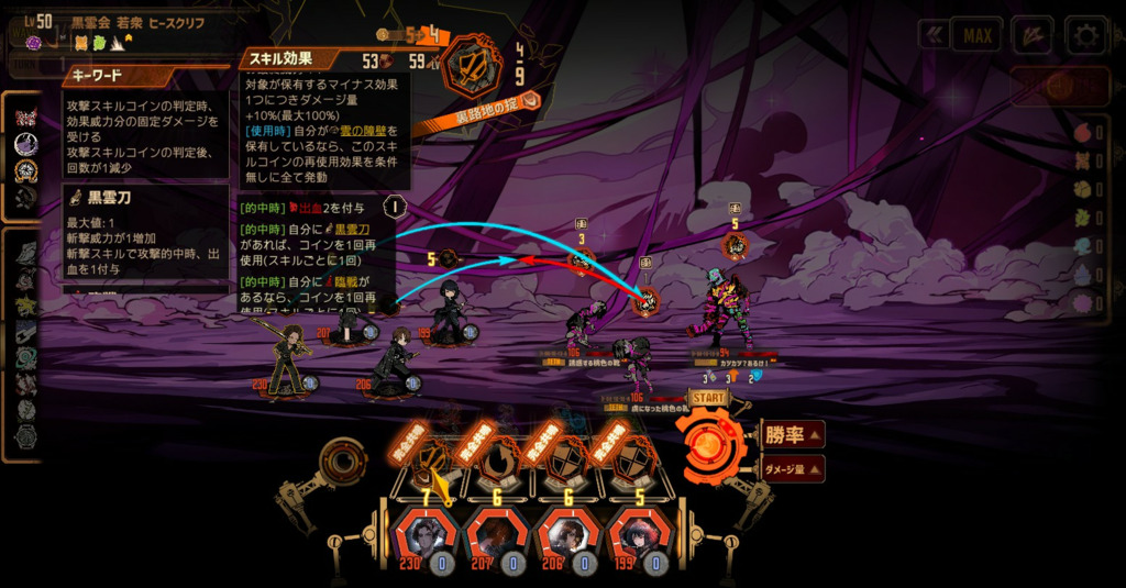 思い出したようにでるスキル1での反撃(追撃?)も大抵出血で威力上がってるから十分ダメージ出て有り難い……