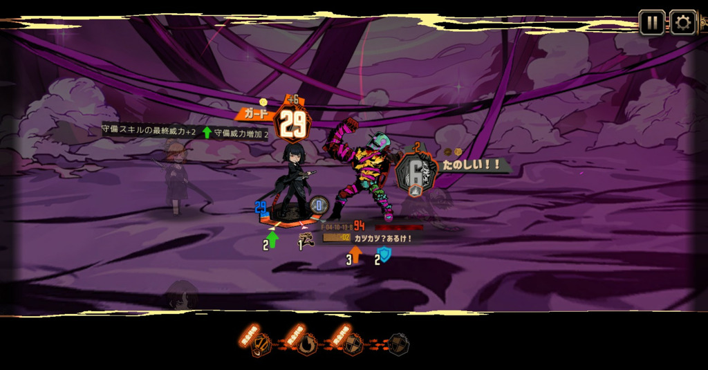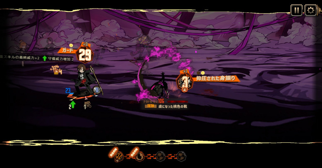 ・守備スキルでマッチ ・攻撃を受けたシーン ・反撃発動せず(出血の付与無し)