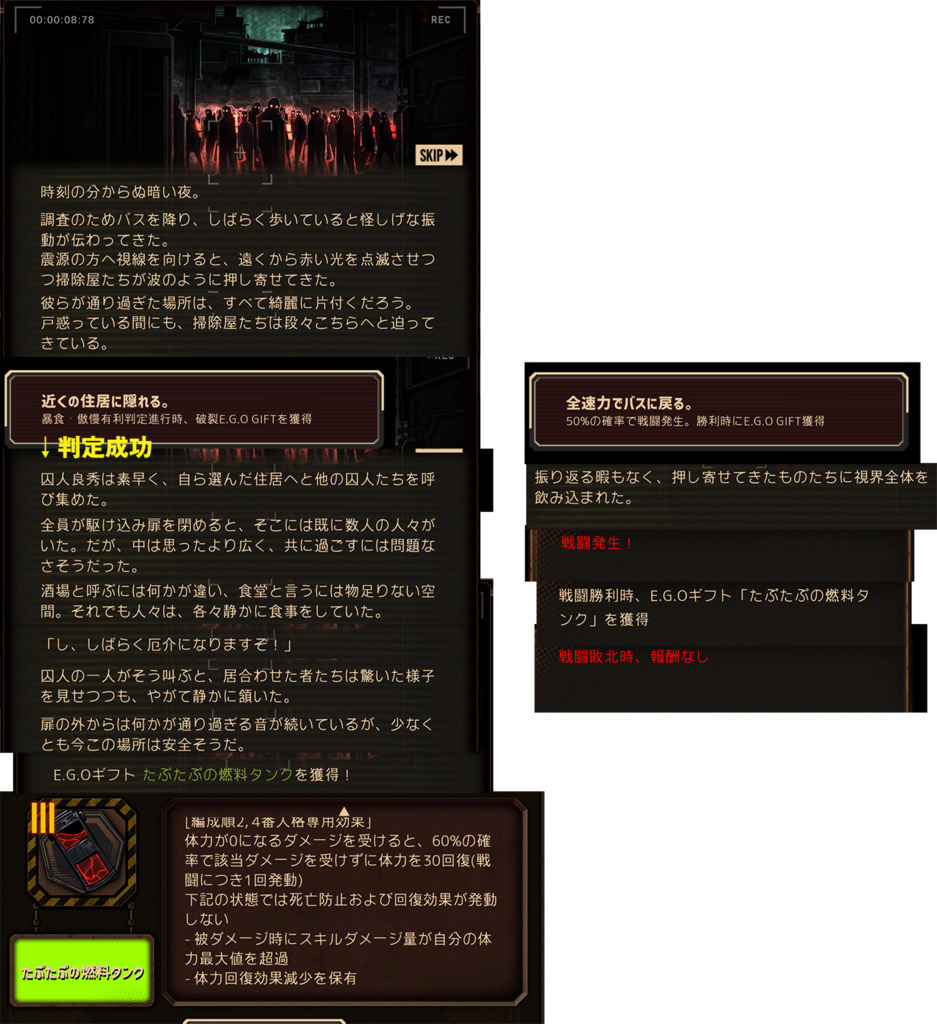 難所の7.5-24は5章のときと同じく、振動PTで突破したな。 第一、第二で資源貯めて、リカルド戦が始まったら速攻でファウストの永続と振動爆破系の攻撃ぶち込んで混乱に押し込んだ。 それでも後半のマッチには付き合えないので、速度の遅い人格にマッチ取らせて、その枠に速度速い奴らが一方攻撃入れる形でなんとか倒した。 下方修正前にこの戦法でやれたので、多分今でも通じるはず。ファウスト永続、ツヴァイイシュ、奥歯ウーティス辺りはほしい