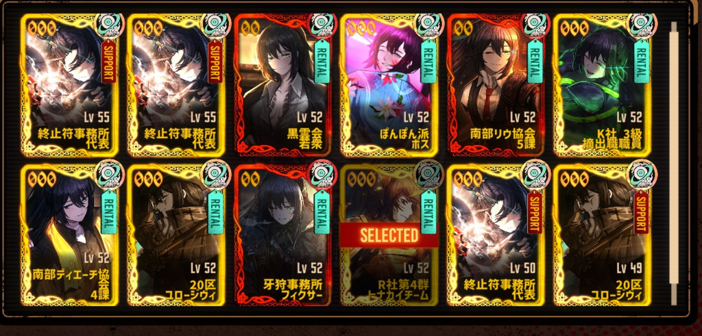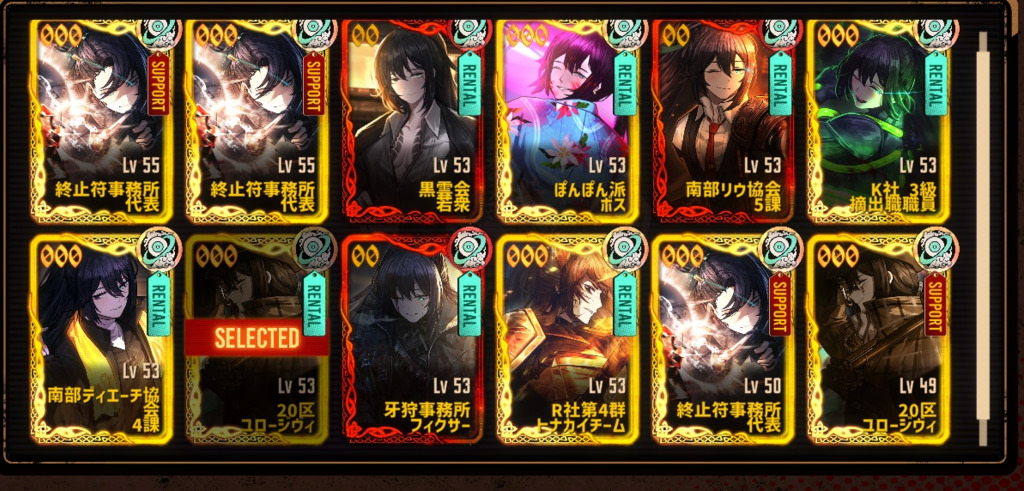 最後だけレベル足りないと辛かったので平均50にした。とにかくホンルがタゲられるし敵の足も速めだから回避持ちの人格だと良いかも