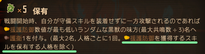 また、援護防御(及び奥義ループ)は集中戦闘において1回分行動を作り出すことができるため、使いこなすと手数に大幅な余裕が出ます。