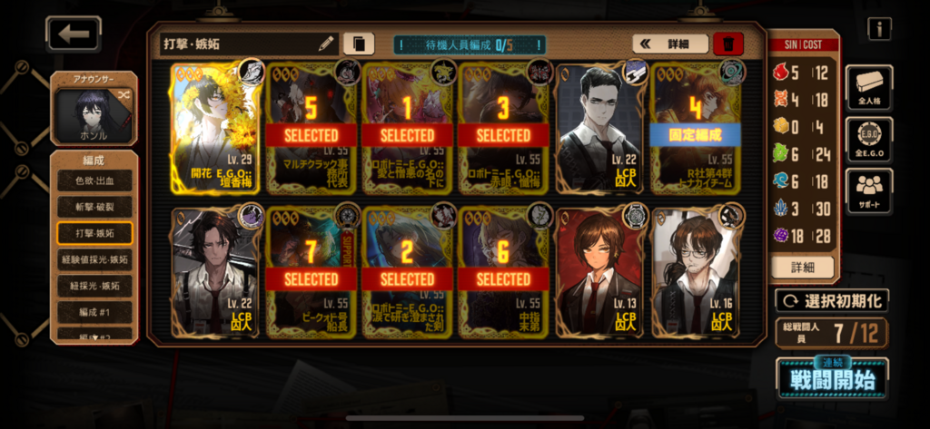 MC組は序盤S3かS1使いたいから立ち上がり嫉妬共鳴揃えずらいなぁ その点、銛使いと船長は序盤からガンガン使っても問題ないし守備嫉妬じゃないけど不足しがちな傲慢と憤怒回収しやすいから使いやすい。 とりあえずロボトミー3名、MCファウスト固定で他色々キャラ試してるんだけどオススメない?