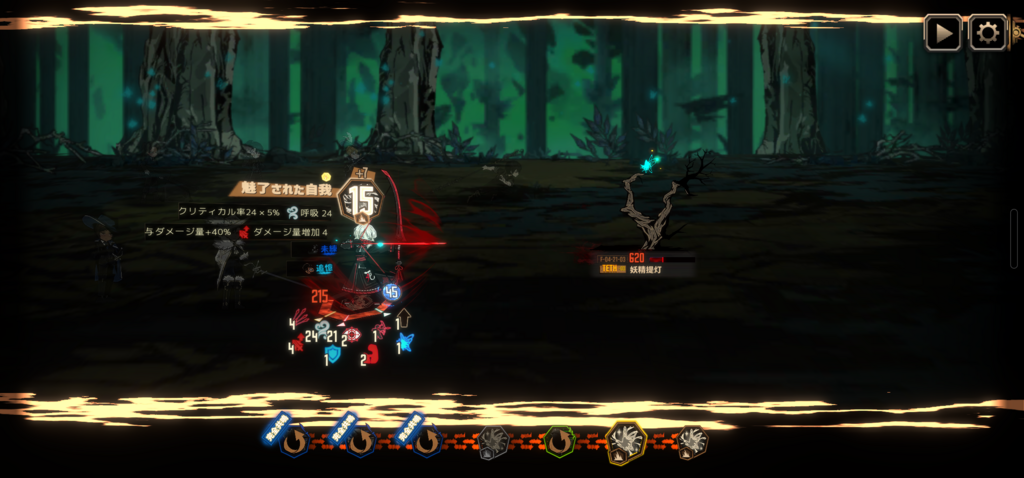 こいつ、鏡ダンジョンクソ強いです。 最初は「スキル3が色欲かぁ…黒雲と組ませるのもアリか?」という思いつきでした。 せっかくでしたので、ただの黒雲出血ではなくもっと歪めた黒雲出血呼吸パを作ってみたのです。 するとどうでしょう。 寝ぼけ眼をこすりながらだったというのに、15層に至った時には平気で威力80オーバーを連打しつつ反撃されても一桁ダメージしか受けない化け物が誕生してしまったのです。 他の囚人は100とか食らってるのに5とかしか入りません。意味がわかんないです。 大きな弱点は15層のターンダメージはアホほど痛いのでそこのケアが必要な点がありますが、回復ギフトを持っておけばさほど気になるほどではありませんでした。 かなーり編成が圧迫されるパーティーではありますが、是非暇であればお試しあれ。