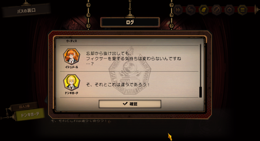 結局7章目玉人格ってどっちなんだろう? ロージャのストーリー見る限りだと、父上裏切りルートのサンチョっぽい。でも、公式からアナウンスされているのは室長(manager of la mancha land)だから、おそらく父上の立場っぽいのよね。
