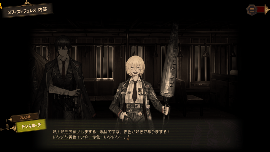 ずっとなんでだろうって気にはなってはいたんですけど、3章でドンキがやらかしてヴェルがキレてたとき、 「ドン・キホーテ」氏って呼んでたんですよねぇ、あの時警告していた相手ってつまりは