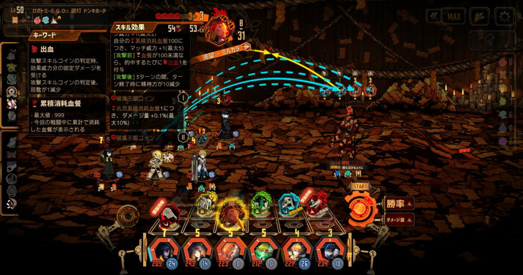 使用後:-23 = EGO使用時-15 、効率減少+2 、ターン終了時-10