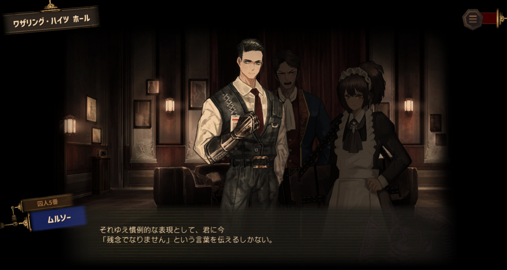 目的よりも先にヒースクリフの身の安全を優先しだしたところ ムルソーの成長を感じて管理人は嬉しいです ムルソー実は仲間のこと結構好きだろ、正直に答えなさい