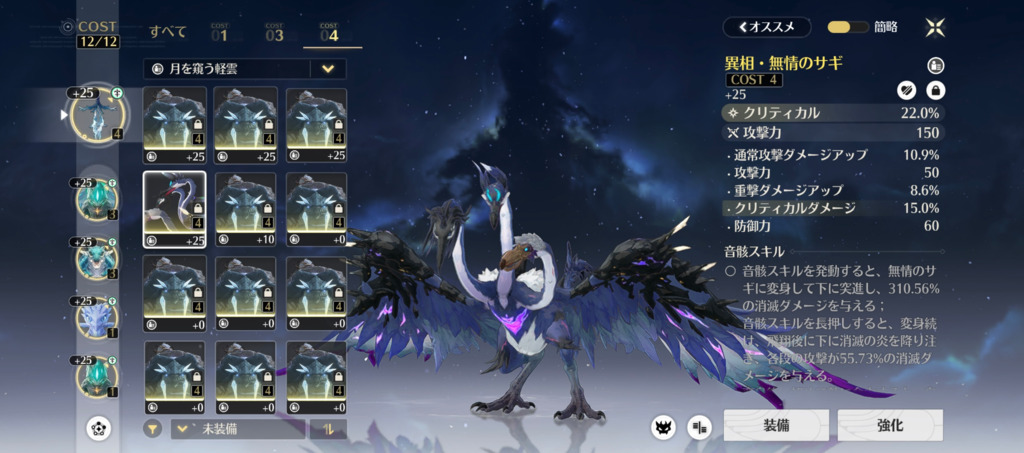 サポート運用だしオプ未解放のメイン一致装備で育成終わらせて良いよな。チュナが足りないのが悪いんや