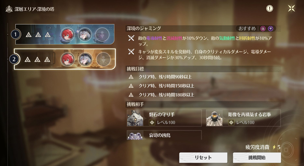 インフレセット売り編成が廃墟も強くて2属性揃ったら戦力的にキャラ不要になるな