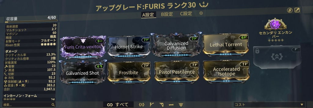 結構後になってこれ作成してみましたら、マルチRiven込みで上の方々のエンカンバーガルバCO異常ビルドだとゲージ上昇も火力もBurstonに匹敵する取り回しと破壊力なんですね。しかもビームがみんな大好き7プリかめはめ波なので早く知っておきたかったやつですw 通常時の射撃音が細いのでProtcolスキン系で強化するといい感じになりますね。