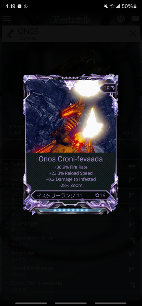 面白い武器なんだけど如何せん取り回しが悪すぎる.発射速度・リロード速度の進化選んでも個人的にまだ足らなかった.速度MOD2種(放射線付き&ODMOD,あとダメ押しにアルケインベロシティ),さらPリロ積んでようやく満足いくぐらいになった.変形速度どうにかならんかなぁ.