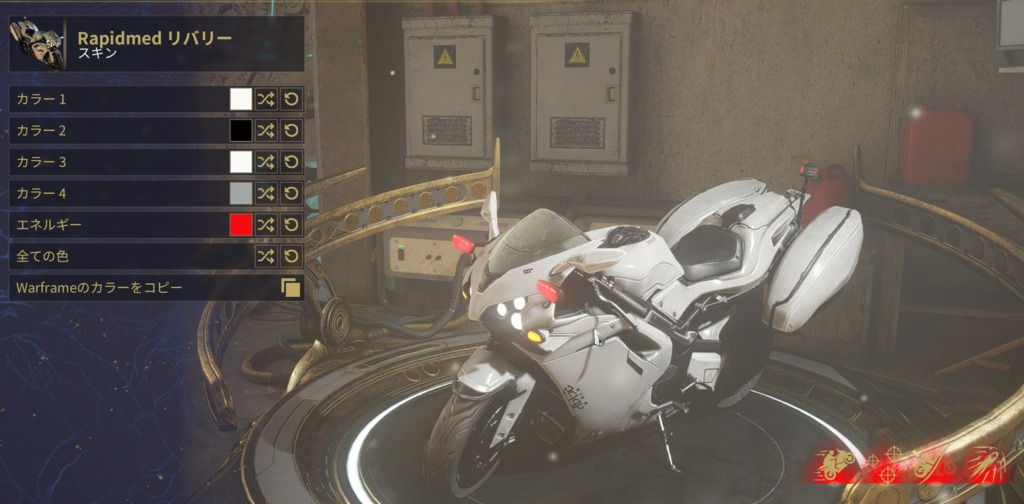 テクスチャだけ変わるスキンは全7種。各55プラチナでセット販売(320プラチナ)もあるけど、T2でシュワちゃんが乗ってたのに似てるCafe Racer、Origin太陽系で乗り回すのに似合いそうなこれぞWARFRAMEってデザインのMonostarは形状が変わるからか単品販売のみで値段も145プラチナと割高。この2つは実質デラックススキンみたいなものか
