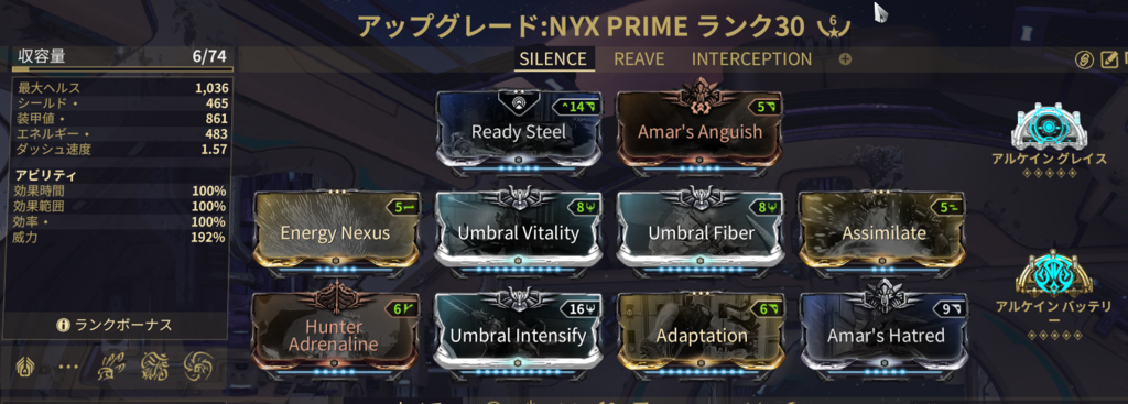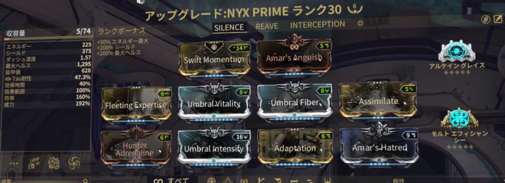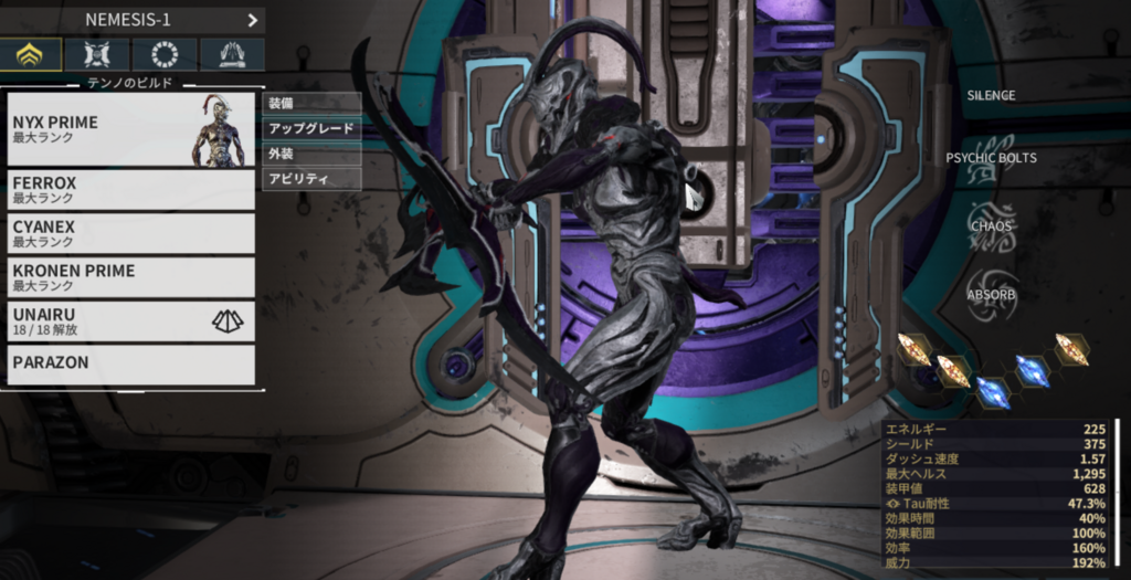 nyxにsilence移植で対シスター用決戦フレームになるかな シスターのシールドをなんとかしないとどうにもならん