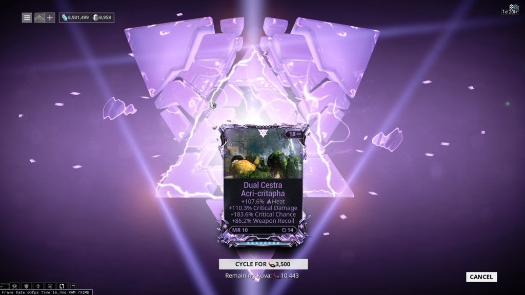 使って気に入ったなら使えばいいし、そうでなければサイクル。RivenのRankあげてないなら、LTは入れる事になるだろうから結果速度+13なんでRank0のGunslinger入れれば近い使用感になるんじゃない
