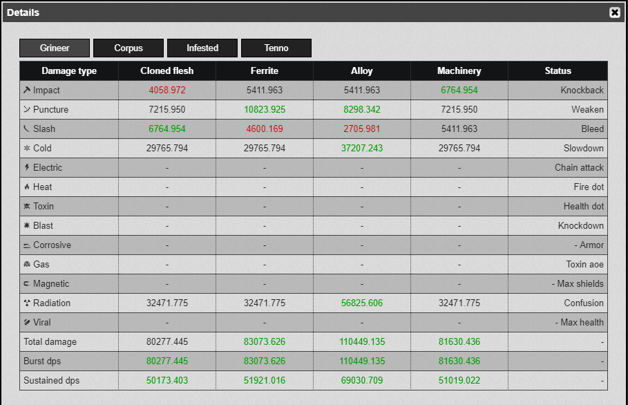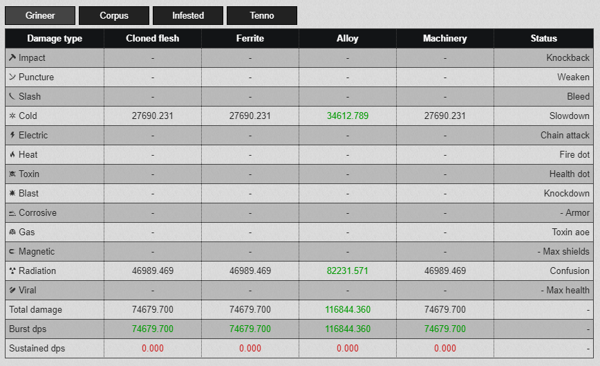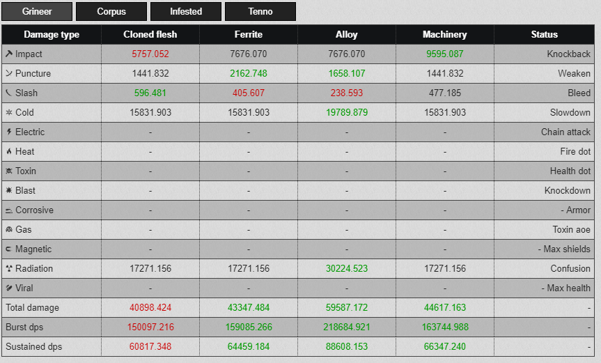 とりあえず作成してフォーマ6つぶっこんでRivenもクリマルチ出たから使ってる。これもRiven次第なんだけど衝撃切断MOD入れたら切断dotがDREAD越えのダメージは出るんだがチャージレート1秒は速度MOD入れないと少し使いづらかった。見た目がいいからしばらく使うことにするよ、ありがとう。