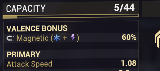 どこの部分の探してるかわからないけど、MOD編集画面なら1枚目のバレンスボーナスってところで見えるし、装備変更するときには名前の横についてるし、買う時は武器の名前の所マウスオーバーすると出るツールチップの下の方に書いてあるよ