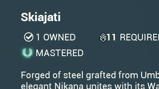 マスタリについてなんですけどカリブラといっしょに貰えるSKIAJATI(近接)をコーデックスで見るとマスタリのマークと経験値バーが無くてカリブラの方には付いてるんですよね。どっちも入手時点でXPは入るらしいのですが見え方に差があるのが謎なんですけどこれみなさんどうなってます?