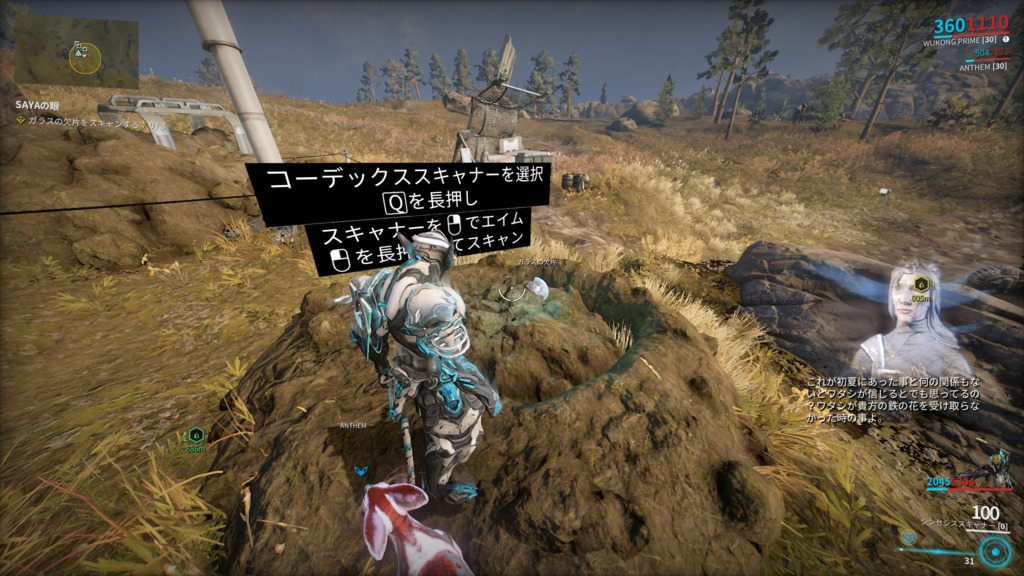 スキャンのチュートリアルはシマリス君に実装されてるよ。シータスにあまりに早く到着してしまうから進行不能回避としてスキャナ渡しているんだろうけど、自力でGARA作ろうとすると開拓より二回りくらい強いLv40グリニアの相をすることになるから、そもそも初心者向きミッションではないはずだ。オペどころかAWもない状態でキャリーされるのを、放置稼ぎ嫌いのDEが良しとするかというと否だし