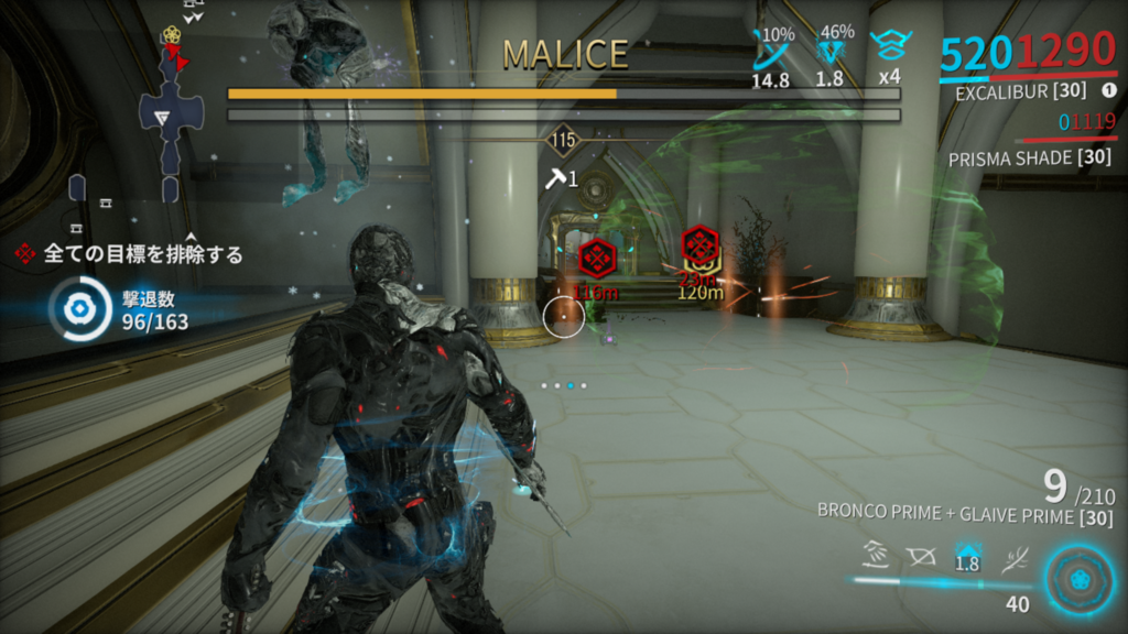 MaliceサンのMagnetize、ローリングすると剥がれて床に落ちますので、落ち着いて行きましょう。突如シールドが0になった時はOPTICORを撃たれてしまった可能性が高く、1秒後に即死級の火炎DOTに襲われますので、オペ出しして逃れるのも重要ポイントですね。ソロで負けると逃げられちゃうのカナシイデス…
