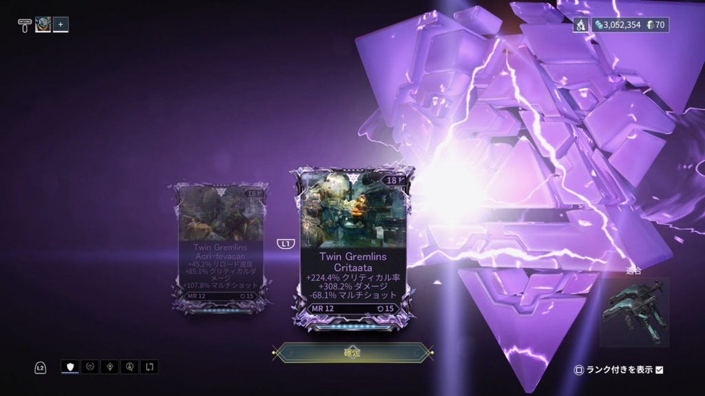 こいつの構成で基礎1枚、マルチ2枚、異常属性2枚で腐食、クリで2枚だとあと1枚何のMOD挿すのがええんかね?今までアコMODの異常率入れてたけどこの連射力でわざわざ異常90%超えにする理由ないなぁと思ったから変えようと思うのだけどMagnumForce辺りがええんかな?趣味武器だからソテのグリニア相手に快適に使える程度でいいのだけど。あとRivenはない