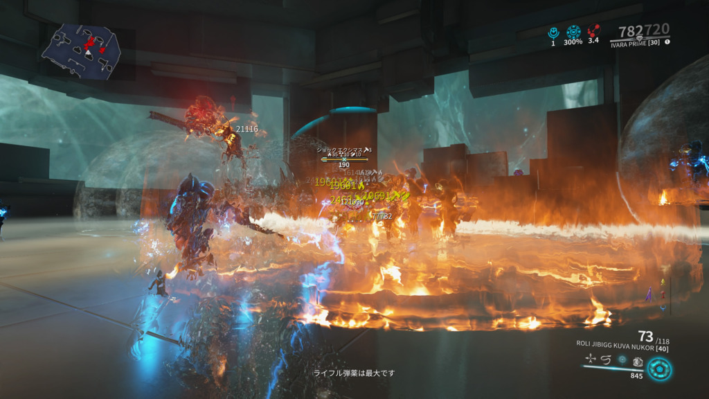クリ率低いけどクリダメは高いNukor君、新アルケインのカスケイディアオーバーチャージでクリ率300%追加+Pクリ率+Pクリダメ入れるとクリティカルが実用的になり、元から状態異常も高いのでめちゃ火力出てテンション上がる。アルケイン発動はAugur系MODのアビ使用でシールド加算するのを入れてIVARAで透明になればオーバーシールド維持し易くステルスボーナスも付いて良い。性質低いけどRivenあれば枠圧縮や取り回しなどで更に使いやすくなる。エクシマス相手にオーバーガード割ってるところ→