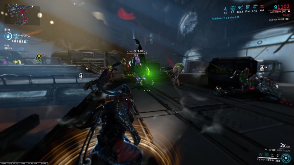 敵が多いからアフィニティ入手も多いっていうのは間違いだな。実際ハイドロンで10分10Wと鋼で絶えず攻撃して10分稼いだ経験値が2倍くらい違う。やっぱり分隊組んでハイドロンでいいと思う。あと堀フレーム以外だと5分以降酸素減りまくるから現実的じゃなかった。多分セドナDS耐久が良いんだろうけど、開拓するのダルそう。