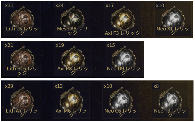 初日に大量に新規レリックを取得しないと後日になるほど出ずらくなるからです(頭アルミホイル)