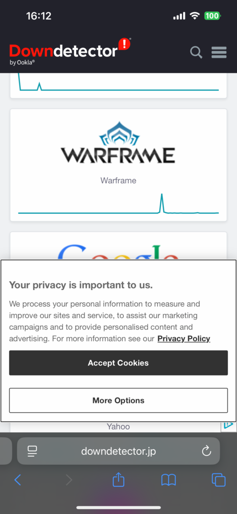 ぽいね。バロ吉への貢ぎ物稼がなきゃだからはよ復旧してくれ。