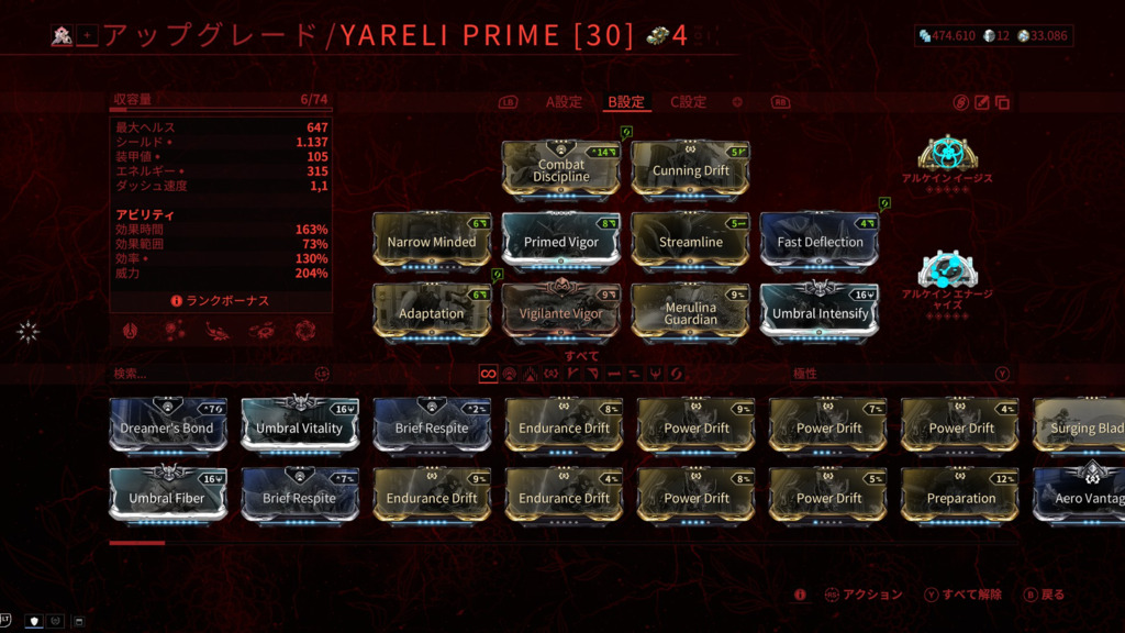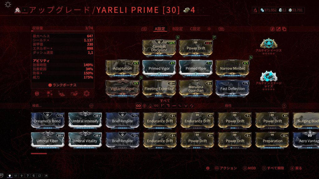 やっと揃えられてプライムが完成したけど、思っていたよりも全然ビルド(というか強み?)が解らねぇ...