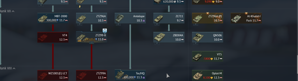 自分はSLガチャで当たりを出したことが無いから間違ってるかもしれないけど、たしかSLブースターとかRPブースターを使う場所(名前は忘れた)に当たり車両のチケットみたいなやつ(この場合はT-80UD/BE)が入ってて、そこでチケットを使うとツリーに出てきたような気がする?