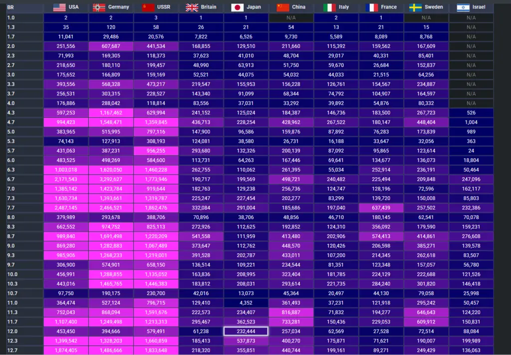 ここを見てボトム率を確認するのじゃ。見方は数字の場所が実際に発生したマッチのBR(車両のBRではない)画像1