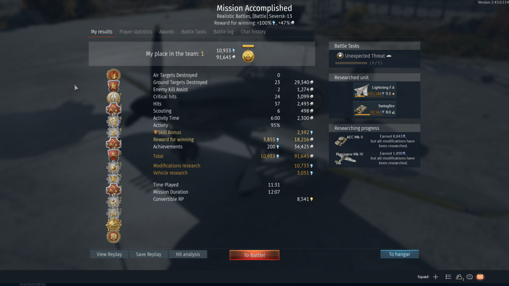 火力があるとはいえ所詮は装甲車、履帯がある戦車に比べ陣地転換が辛くて思ってたよりずっと使いづらかった。今まで装甲車は対空砲としてはよく使っていたものの対戦車戦に使ったことはなかったからあまり慣れないというのもあるかもしれんが40戦近くRBでやってみて思ったのは装甲面や足はともかく陣地転換のやり辛さは結構致命的、思ったように動けない…