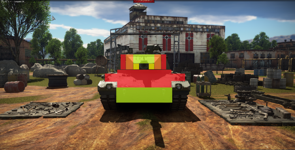 カスタムで装甲を検証した。検証動画にして上げるほどには気概がないからこんな話がある程度に軽く見てほしい。条件、使用弾薬は倍率と弾薬変更を忘れてた都合上T-64B初期弾(10m:440mm)、平地で距離400ほどからそれぞれの箇所に20発。赤:9割5分強加害不可。オレンジ6割強加害不可。黄色2割強加害不可。緑1割以下加害不可(砲塔上部を貫通しただけパターン有)。※ただし、T-64Bは車高が低いことも留意。 結論、チャレンジャー1の車体複合装甲は泣いていいと思う。