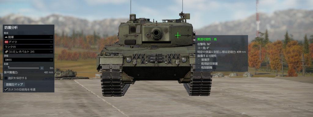 最近買って使い始めたけど、matchingは大体9.7~10.7で、複合装甲あるとはいえ、砲塔のほっぺ以外は普通に抜かれるね。ドイツのMBTのNo.2が2A4だとすると、ドイツにもレオパルト2A6、7とかが欲しいね。アメリカ、ソ連と比べると厳しそうではある
