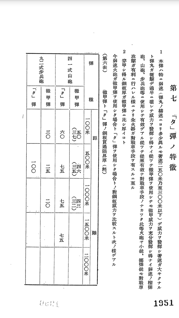 この資料だと四一式山砲のタ弾の貫徹力は75mmになってるけどどうなんだろう