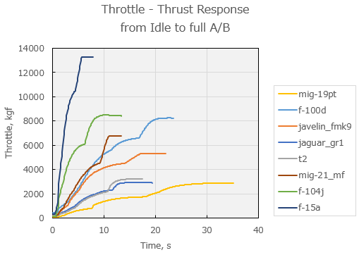 ・100%出力からA/B出力までに滞りがあるのは全機共通だった。 ・ただ初期実装組は応答が遅い傾向がある。 ・特に酷いのがMiG-19シリーズ。