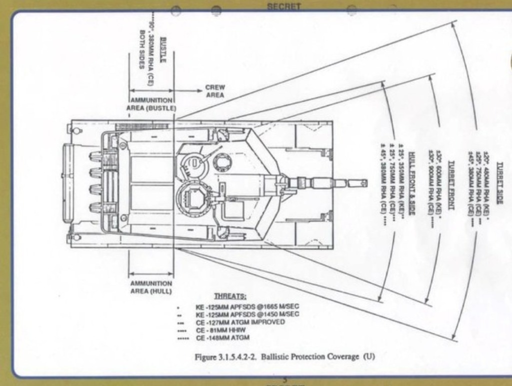 いつ頃の資料か分からないけど、車体正面に劣化ウラン装甲(DU Armor)が装備されてたのはごく少数みたいね。他の資料でも砲塔前面って書いてあるだけで車体の装甲には触れてないのばっかだった