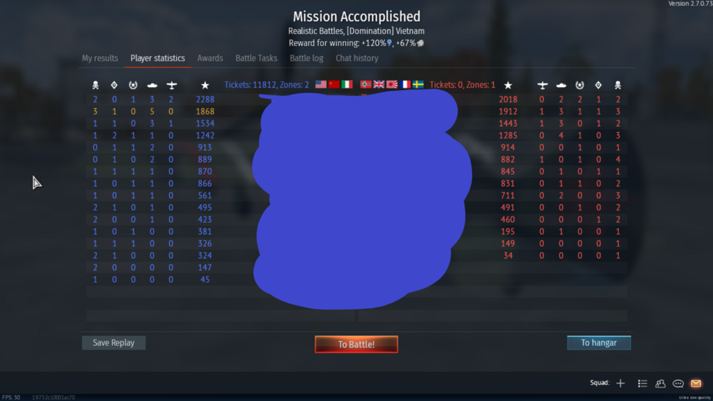 やったぜ。 後は毎日のログインとフランスゥータドコブラで2キルでM6A2E114がカモフラージュまで手に入るぜ。 見ろよなぁ!回を重ねるごとに難易度が上がった無残なチャレンジタスクをよぉ!面倒な割にそこまで大したビークルも貰えなくて頭に来ますよ! S4は至急リークが出ちゃっ…たぁ!にあったF-105とかAH-56とかいいのくれや。金、ためて待つぜ。