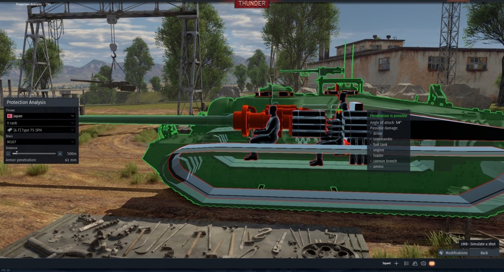 側面から弾薬庫の真上の傾斜してるところ。誘爆して吹っ飛ばせる。一試合に二度もワンパン出来たこともある。あるいは上のM2重機関銃で起爆。弾薬庫まで破壊できる。