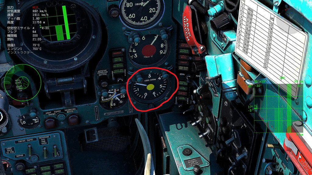 この機体始めて乗るのでめちゃくちゃ初歩的な質問なのですが、燃料計はどれでしょう・・・英語圏の国はFUELって書いてあるメーター探せばいいけど、ソ連はわからん・・・