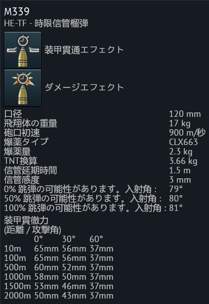 こいつの遅延信管ってコンクリート抜いた後に爆発させたりするものだよな? 本来の挙動はAPHEに近くないといけないのでは