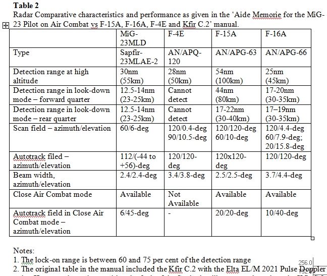 シリアのMiG-23MLDのsapfir 23MLAE-2レーダー(輸出版)をアメリカで研究されたときはF-16のレーダーと同等でF-15のレーダーよりは顕著に劣るとされているのでかなりいいレーダーではある