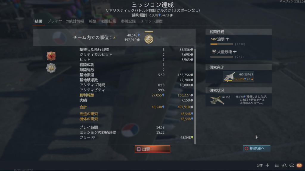 こんなに撃墜しても基地爆の報酬のほうがでかいんやな。