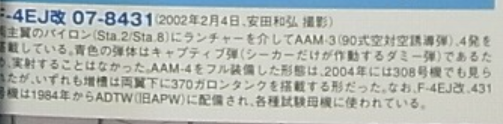 そもそも記事の内容と写真が合ってないし、肝心の記事もAAM-3のキャプティブ弾×4搭載の話から唐突にAAM-4が出てくる。これAAM-3と書くべき所の誤植なんじゃないか?どの雑誌の何年何月号からの切り取りかソースを出してくれ木主。
